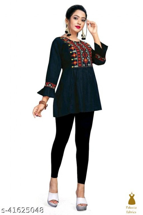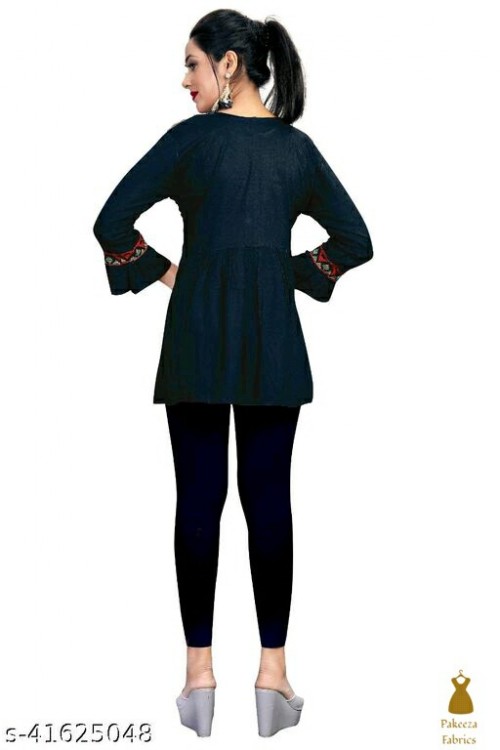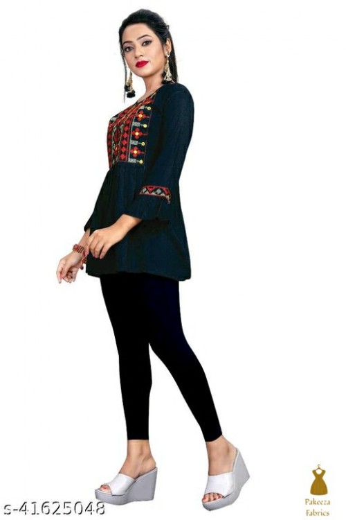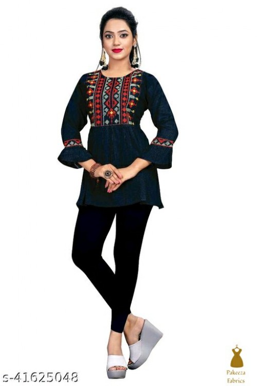 Aavi's Embroidered Women's tops made of 100% Rayon, Skin Friendly, Wonderfully Soft, Comfortable and Breathable. The unique Embroidered Design that is Custom-Made in our In-House Factory will set you apart from the crowd, so flaunt it at weekend parties or wear it at your office or home.