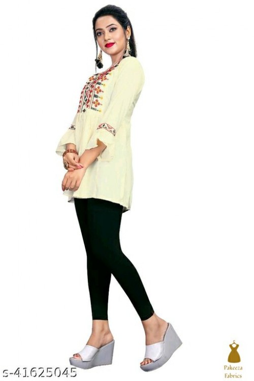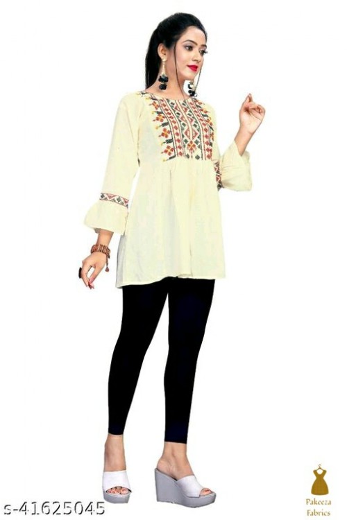 Aavi's Embroidered Women's tops made of 100% Rayon, Skin Friendly, Wonderfully Soft, Comfortable and Breathable. The unique Embroidered Design that is Custom-Made in our In-House Factory will set you apart from the crowd, so flaunt it at weekend parties or wear it at your office or home.