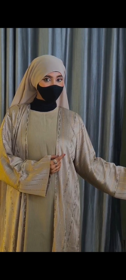 MADE IN UAE ???????? PARTY WEAR SHRUG STYLE ABAYA EMBELLISHED STONE WORK SHRUG STYLE ABAYA. (With Matching hijab) SIZE ADJUSTABLE BELT ALSO AVAILABLE. Size:- Light grey 54,56 Beige 54,56,58 (BOTH COLOUR AVAILABLE IN IMAGES) Material:- Inner:- cy crush (quality guaranteed) Outer:- zoom fabric (quality guaranteed)