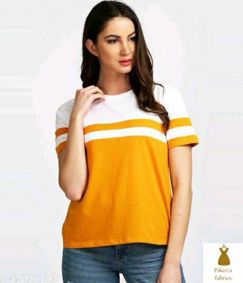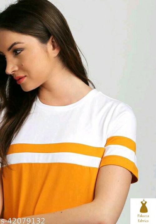 Trendy Partywear Women Tshirts * Fabric: Cotton,Cotton Blend Sleeve Length: Short Sleeves Pattern: Printed Multipack: 1,2 Sizes: S (Bust Size: 36 in, Length Size: 30 in) M (Bust Size: 38 in, Length Size: 31 in) L (Bust Size: 40 in, Length Size: 32 in) XL (Bust Size: 42 in, Length Size: 33 in) Easy Returns Available In Case Of Any Issue